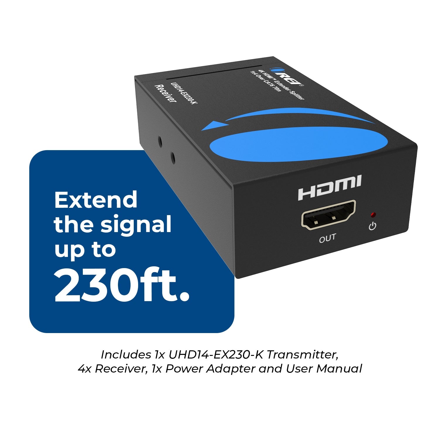 4K@60Hz 1x4 HDMI™ Extender Splitter (Loop) - 230ft (Cat6) - (UHD14-EX230-K)