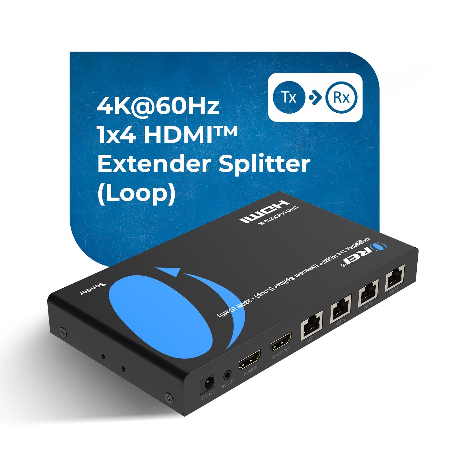 4K@30Hz 1x4 HDMI™ Extender Splitter (Loop) - 230ft (cat6)-HD14-EX165-K