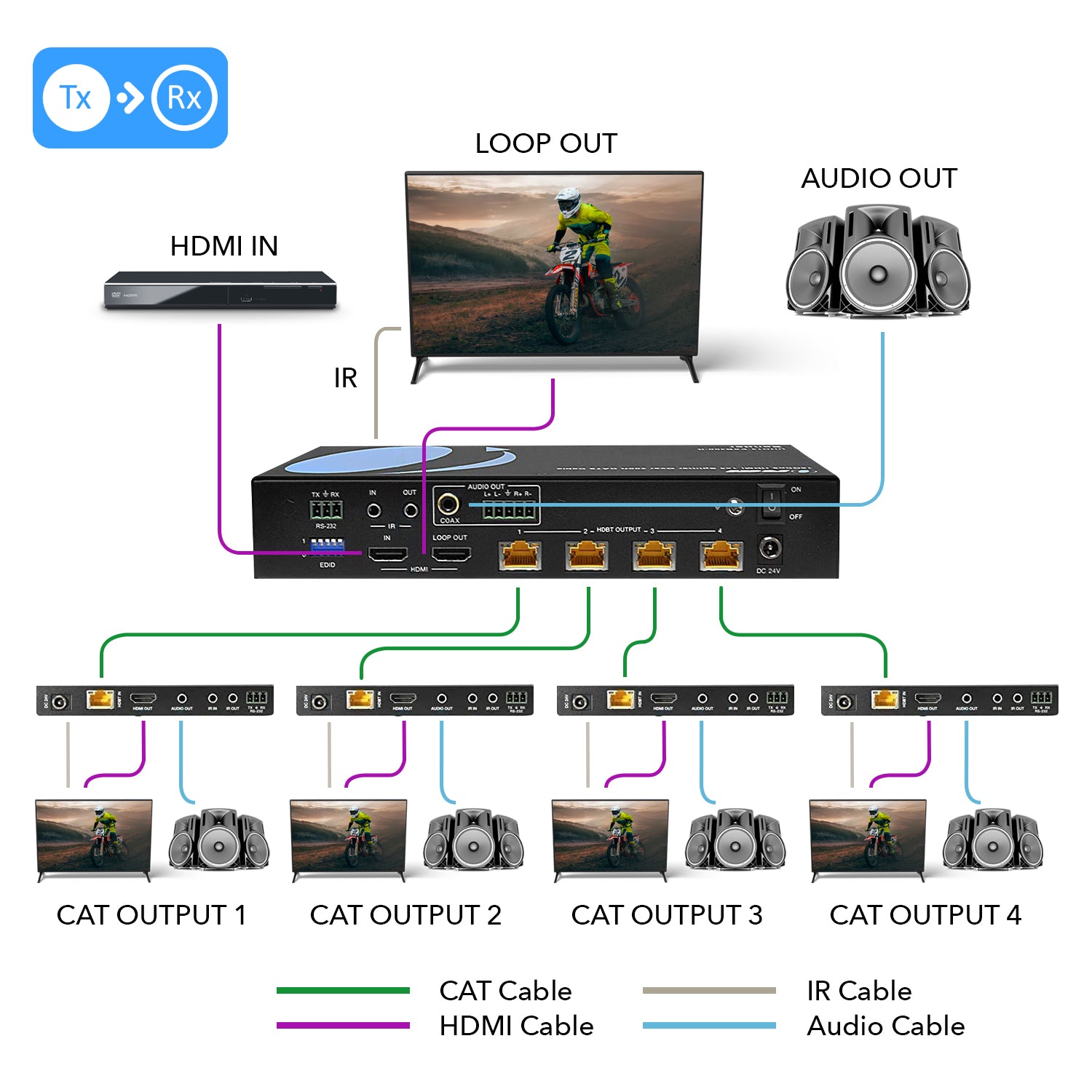 1080p 1x4 HDMI™ Extender Splitter (Loop) - 230ft (cat6)-HD14-EX132-K