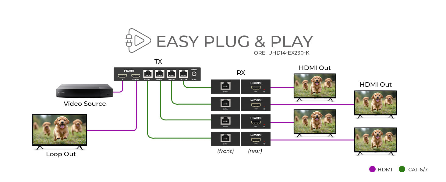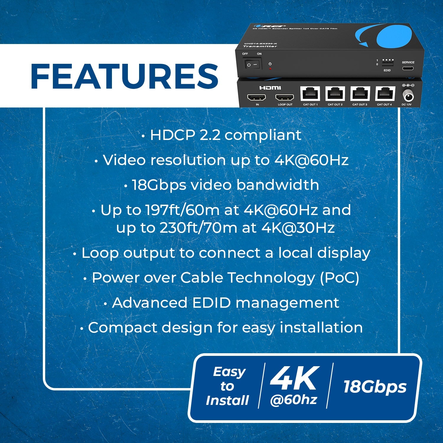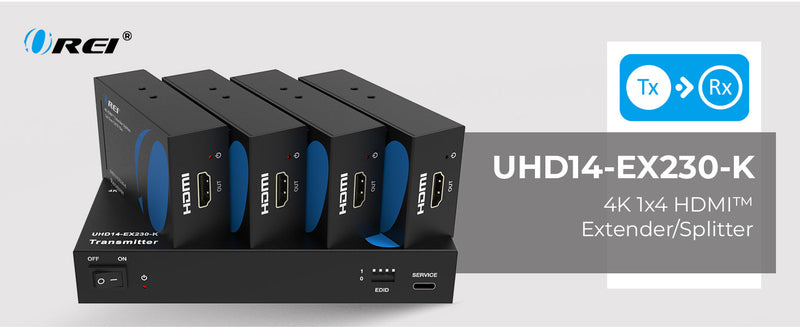 OREI UHD14-EX230-K: 4K HDMI™ EXTENDER SPLITTER 1X4 OVER CAT6 70M