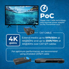 With Power over Cable (PoC) functionality, only one power supply is needed at the transmitter, significantly reducing cable clutter and installation complexity. Advanced EDID management further enhances device compatibility, making this unit a plug-and-play solution for various AV applications.