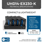 Designed for flexibility and fast deployment, this splitter HDMI extender features a compact, discreet build. No drivers or complex configurations are needed—just connect and go. Whether you're building a 1x4 HDMI splitter over CAT6 network or extending 4K content across multiple screens, the UHD14-EX230-K is a reliable and scalable choice.