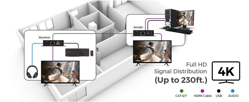 4K@60hz HDMI™ Extender (KVM) - 230ft (Cat6) (UHD-EX230-KVM1)