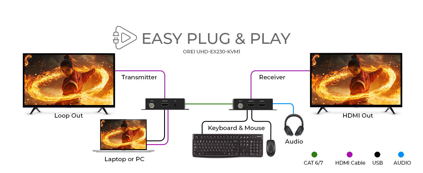 OREI UHD-EX230-KVM1: 4K@60HZ HDMI™ EXTENDER (KVM) - 230FT (CAT6)
