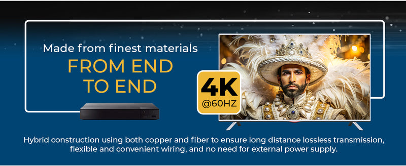 Built with a hybrid copper and optical fiber design, the cable eliminates interference for stable, distortion-free transmission. Gold-plated connectors and a nylon-braided PVC jacket add durability and extended plug life, ensuring a secure connection and long-lasting performance—even in demanding AV environments.