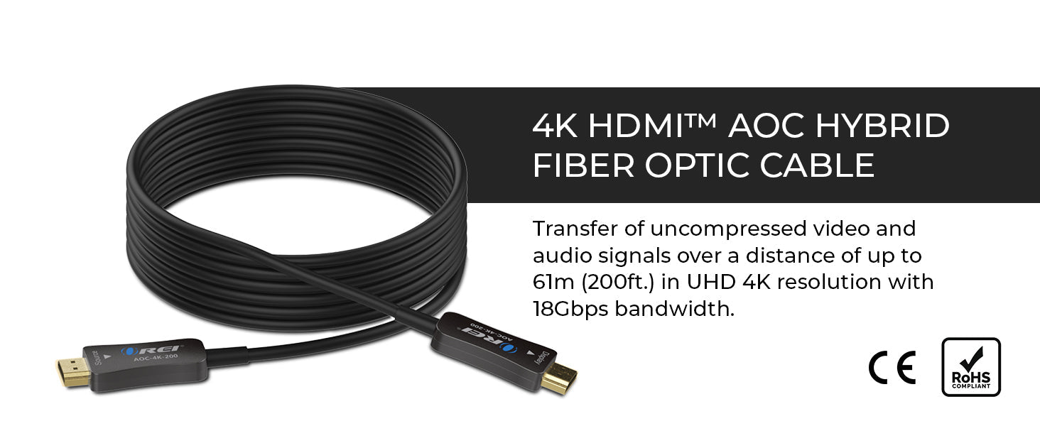 OREI 200ft Fiber Optic HDMI 2.0 Cable 4K 60Hz HDR High Speed (AOC-4K-200)