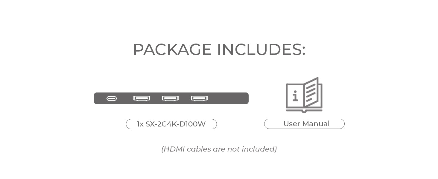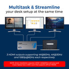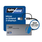 The SplitXtend™ SX-2C4K-D100W Triple HDMI Adapter is built to maximize productivity by expanding your display setup with three additional screens. It supports HDMI outputs at 4K@60Hz, 4K@30Hz, and 1080p@60Hz, allowing you to mirror or extend your desktop for more efficient multitasking.