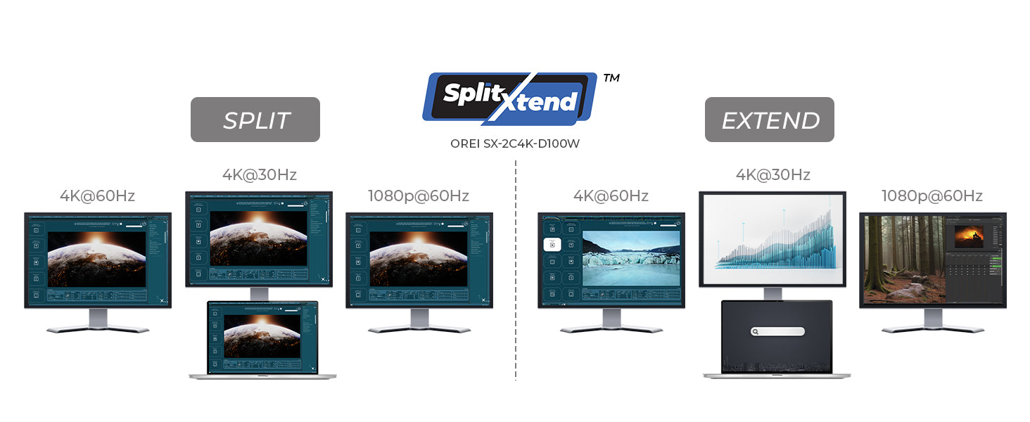 OREI 4K SplitXtend™ 3-Displays (PD 100W) (SX-2C4K-D100W)