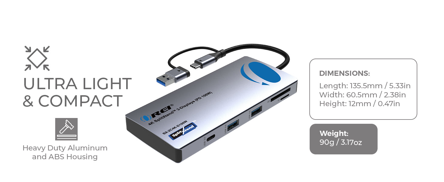 OREI SX-2C4K-D100W: 4K SplitXtend™ 3-Displays (PD 100W)