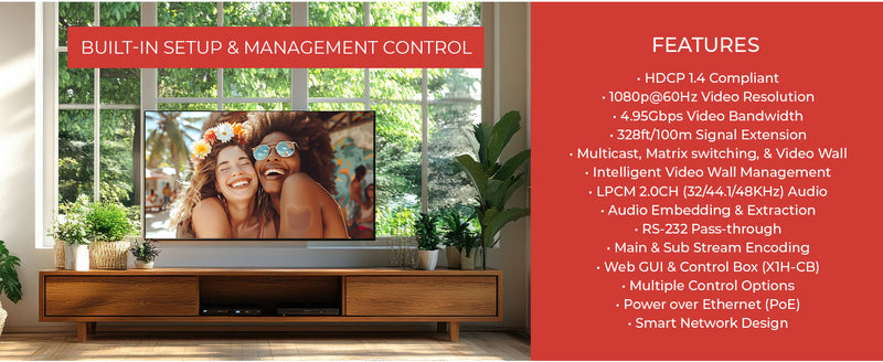 With intelligent Web GUI management, flexible control options (through X1H-CB control box), and Power over Ethernet (PoE) support, it offers a reliable, scalable, and easy-to-install AV distribution solution.