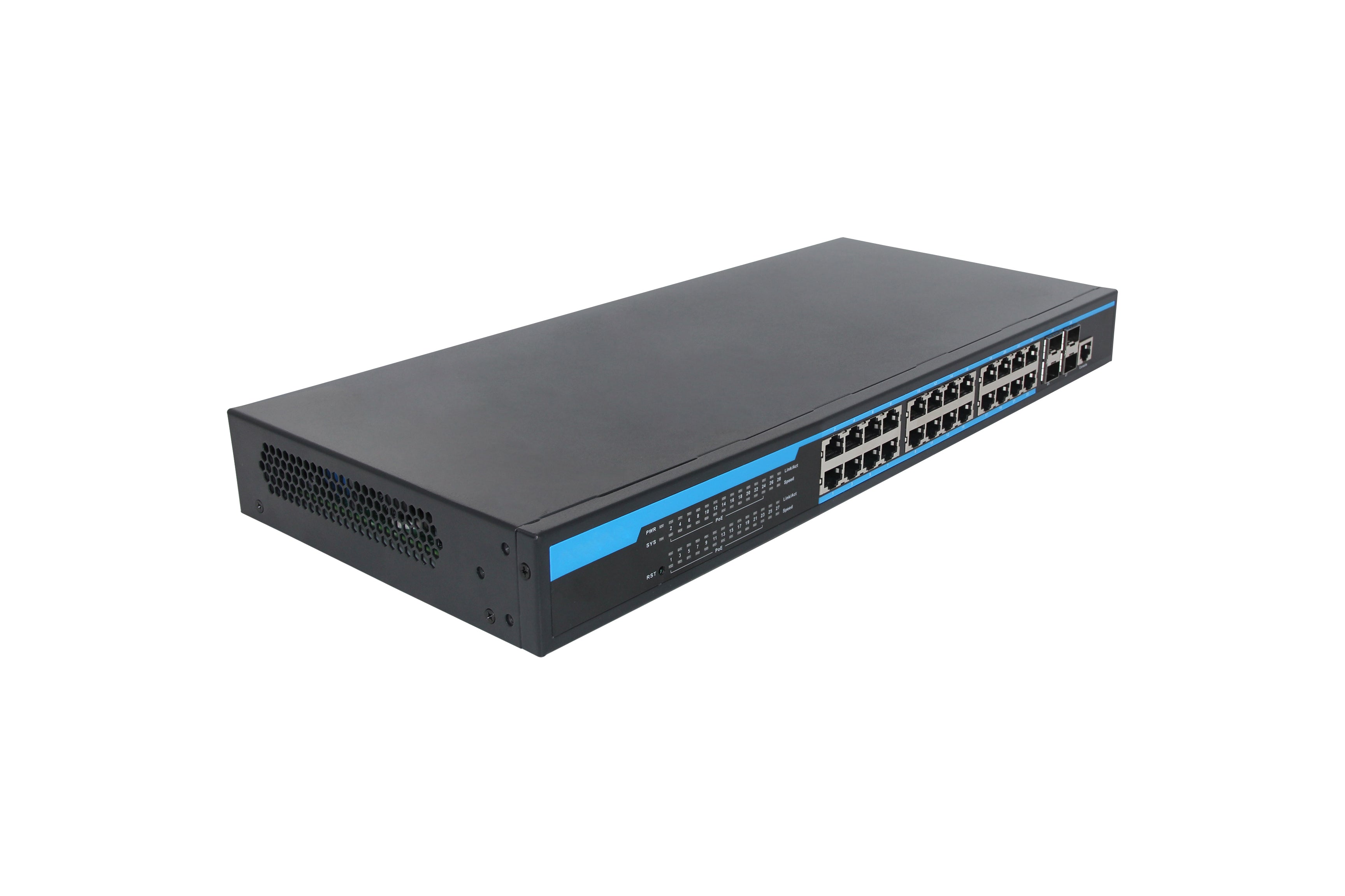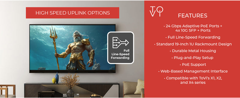 ToVi 24-Port Gigabit PoE Switch w/ 4×10G SFP+ Uplink (1U Rackmount)