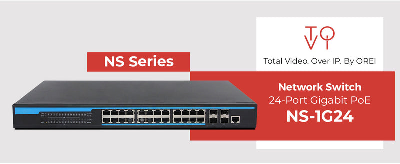 The built-in web-based management interface allows for flexible network control, while PoE support simplifies deployment of IP cameras, wireless access points, and other AV devices like the ToVi range of products by OREI. The NS-1G24 is completely compatible with and made specifically for ToVi’s X1, X2, and X4 series of products.