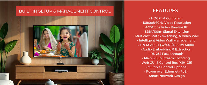 With intelligent Web GUI management, flexible control options (through X1H-CB control box), and Power over Ethernet (PoE) support, it offers a reliable, scalable, and easy-to-install AV distribution solution.