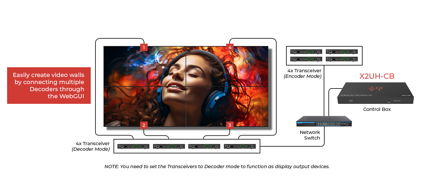 With built-in HTTPS and SSH support, the X2UH-CB enables secure remote access, while its intuitive Web GUI with drag-and-drop functionality simplifies system setup and control. It supports robust video wall configurations with window roaming, marquee display, and seamless distributed switching.