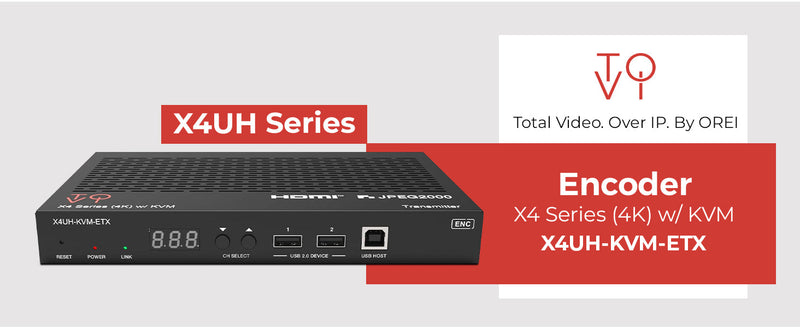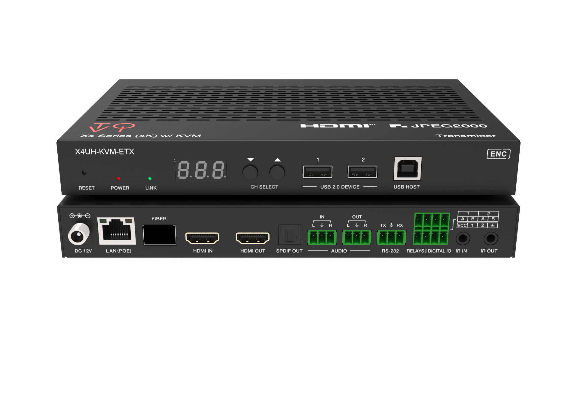 The ToVi X4UH-KVM-ETX supports HDMI 2.0b and HDCP 2.2, delivering pristine 4K@60Hz (4:4:4) video with 18Gbps bandwidth for uncompromised ultra-high-definition quality. It transmits video, analog/digital audio, IR, RS-232, CEC, and USB simultaneously over Ethernet, making it ideal for professional AV-over-IP deployments.