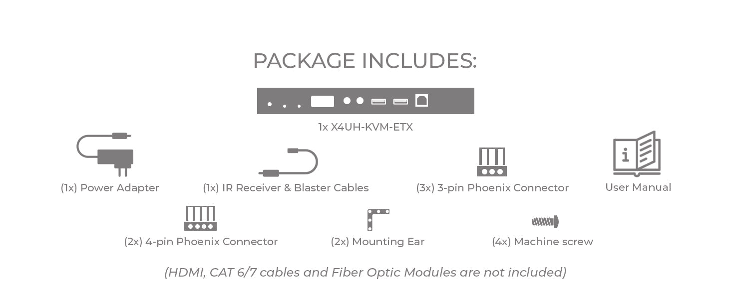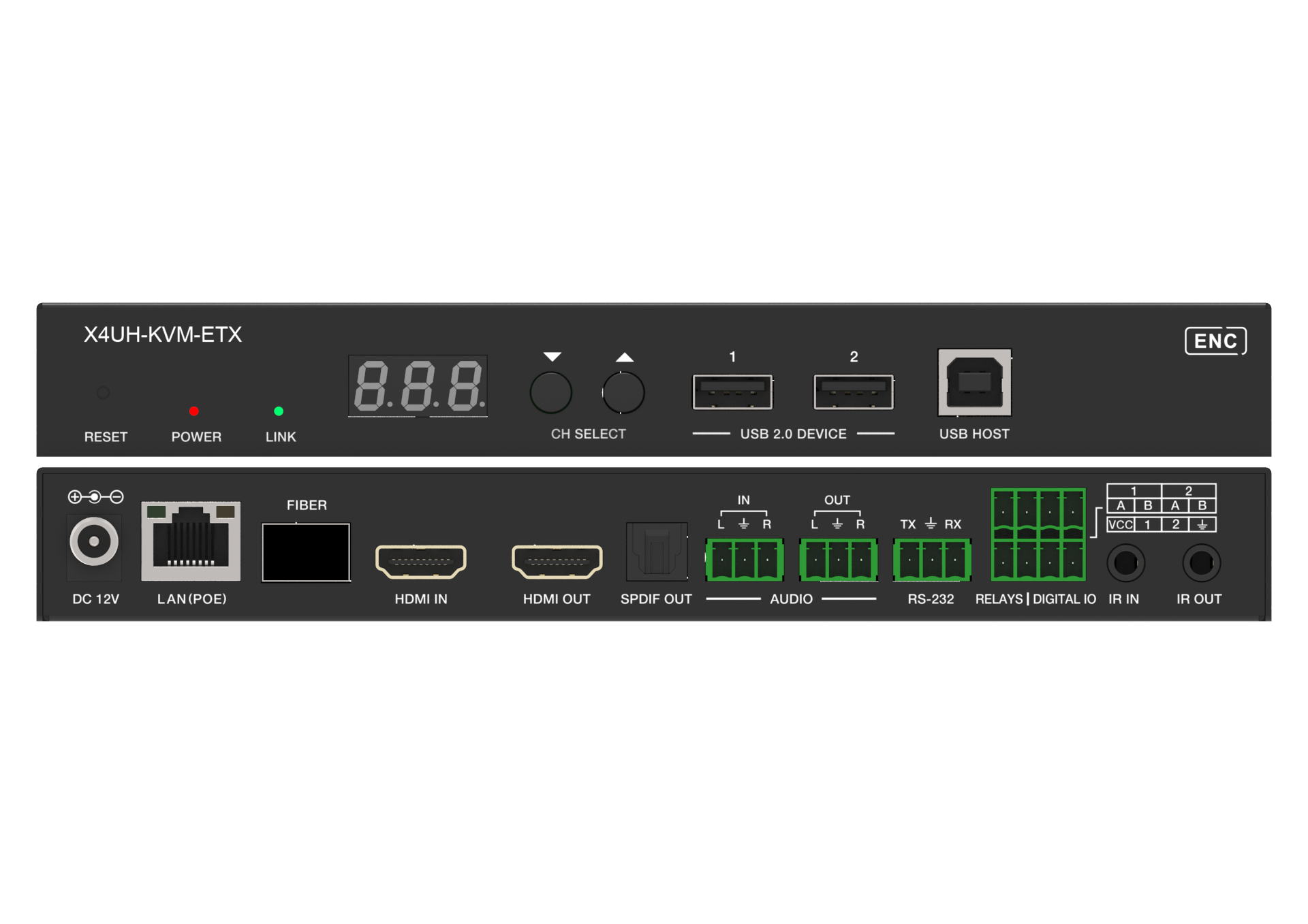 The X4UH-KVM-ETX is a versatile HDMI extender and AV-over-IP solution designed for high-performance, long-distance signal transmission. Fully compliant with HDCP 2.2 and HDMI 2.0b, it supports 4K@60Hz (4:4:4) video with up to 18Gbps bandwidth, delivering uncompromised ultra-high-definition quality.