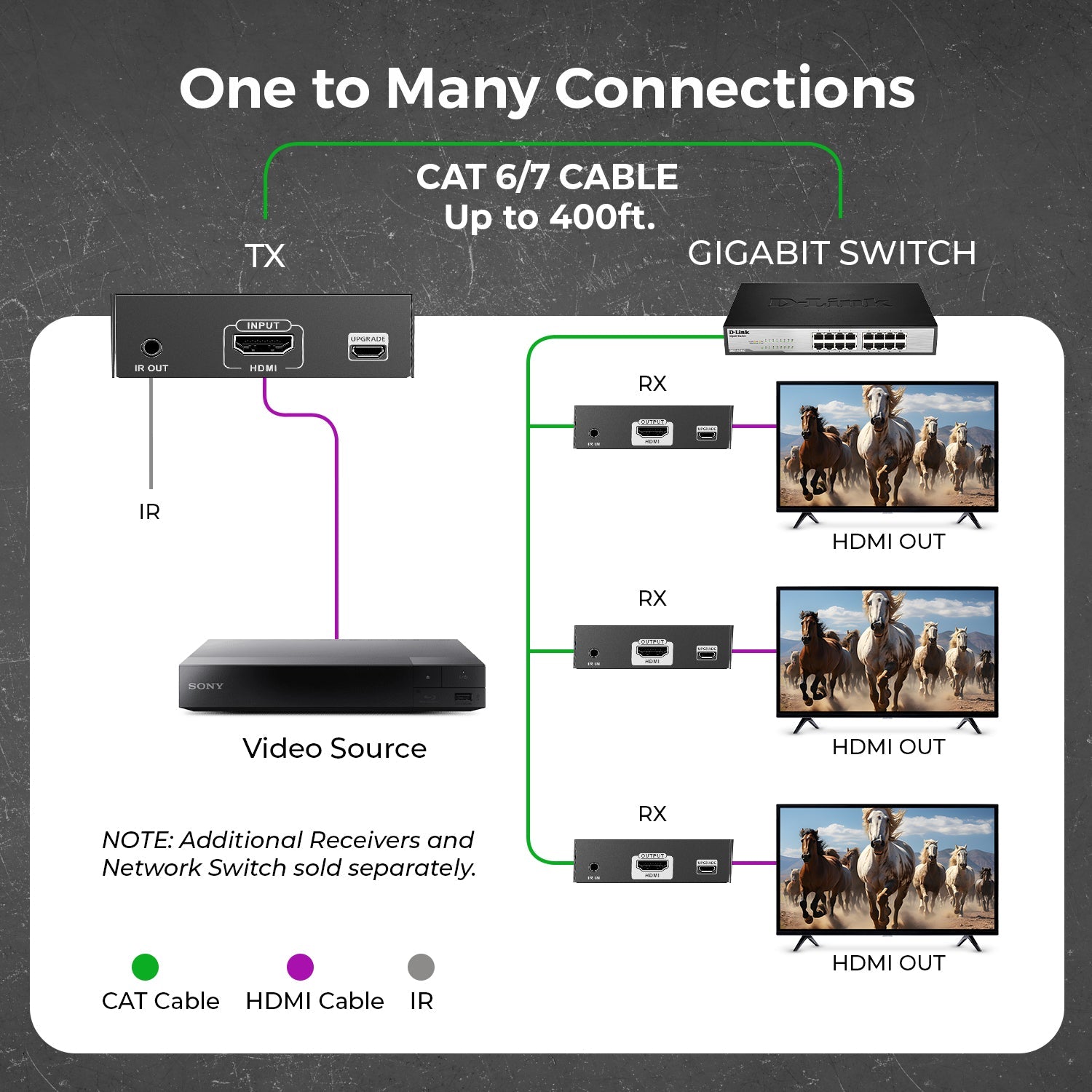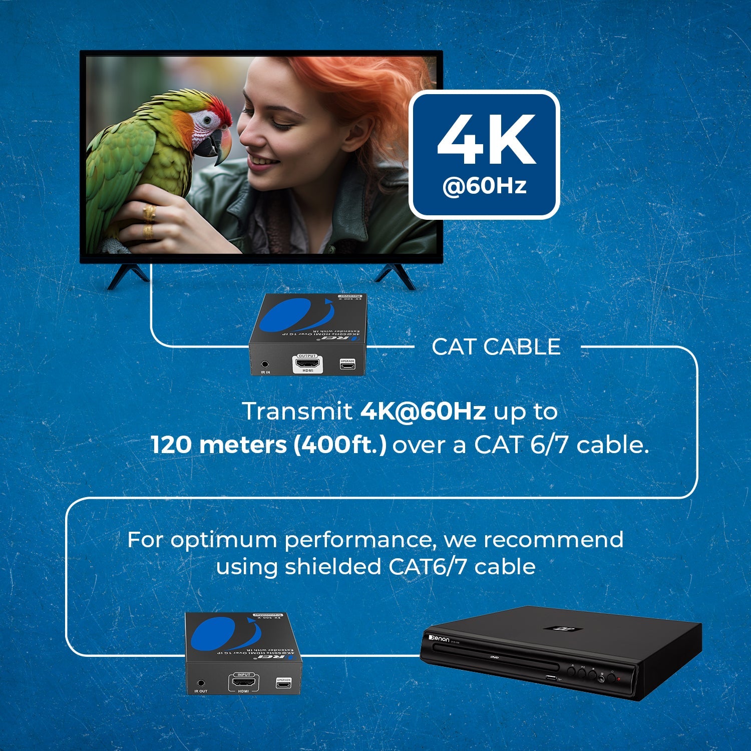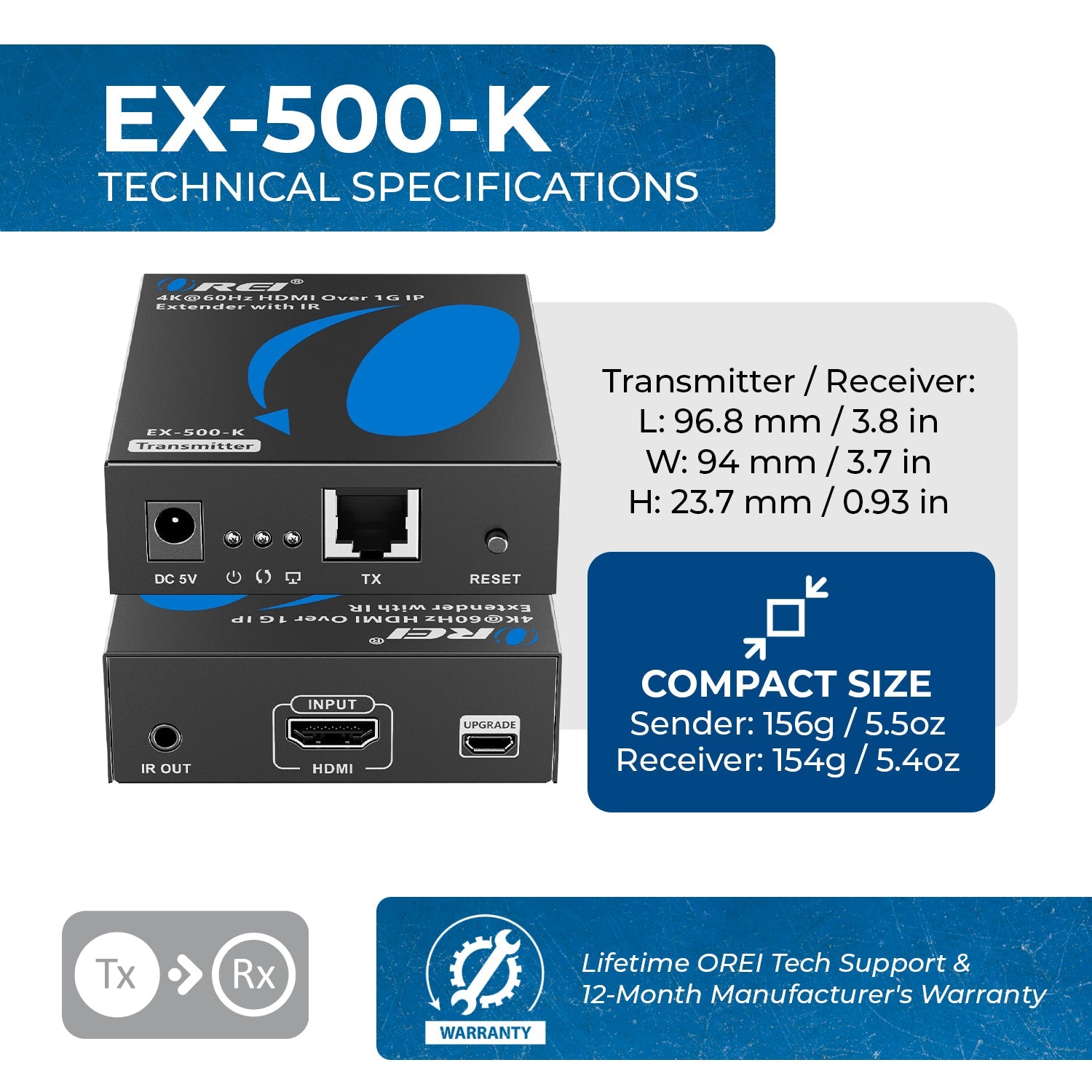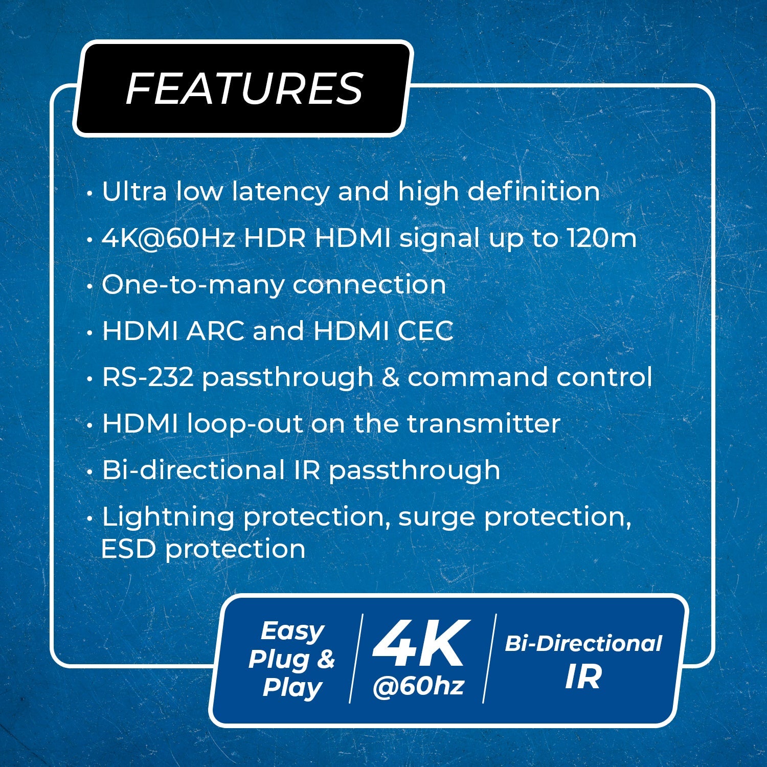 4K@60hz HDMI™ Extender (Over 1G IP, IR) - 500ft (Cat6) (EX-500-K)