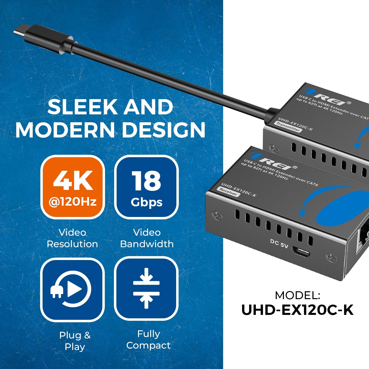 4K@120Hz HDMI Extender Over Cat6 with USB C Upto 82 Feet (UHD-EX120C-K)