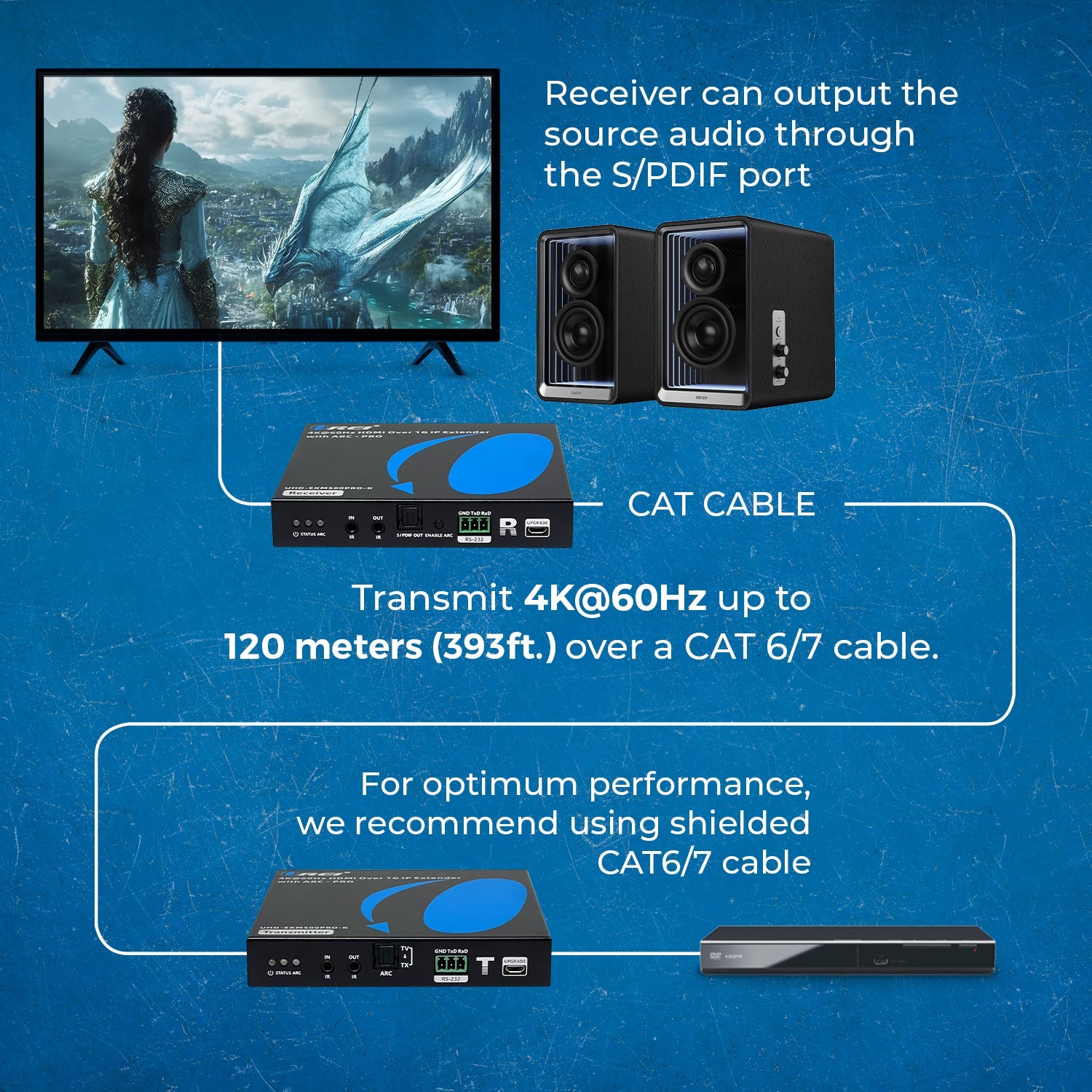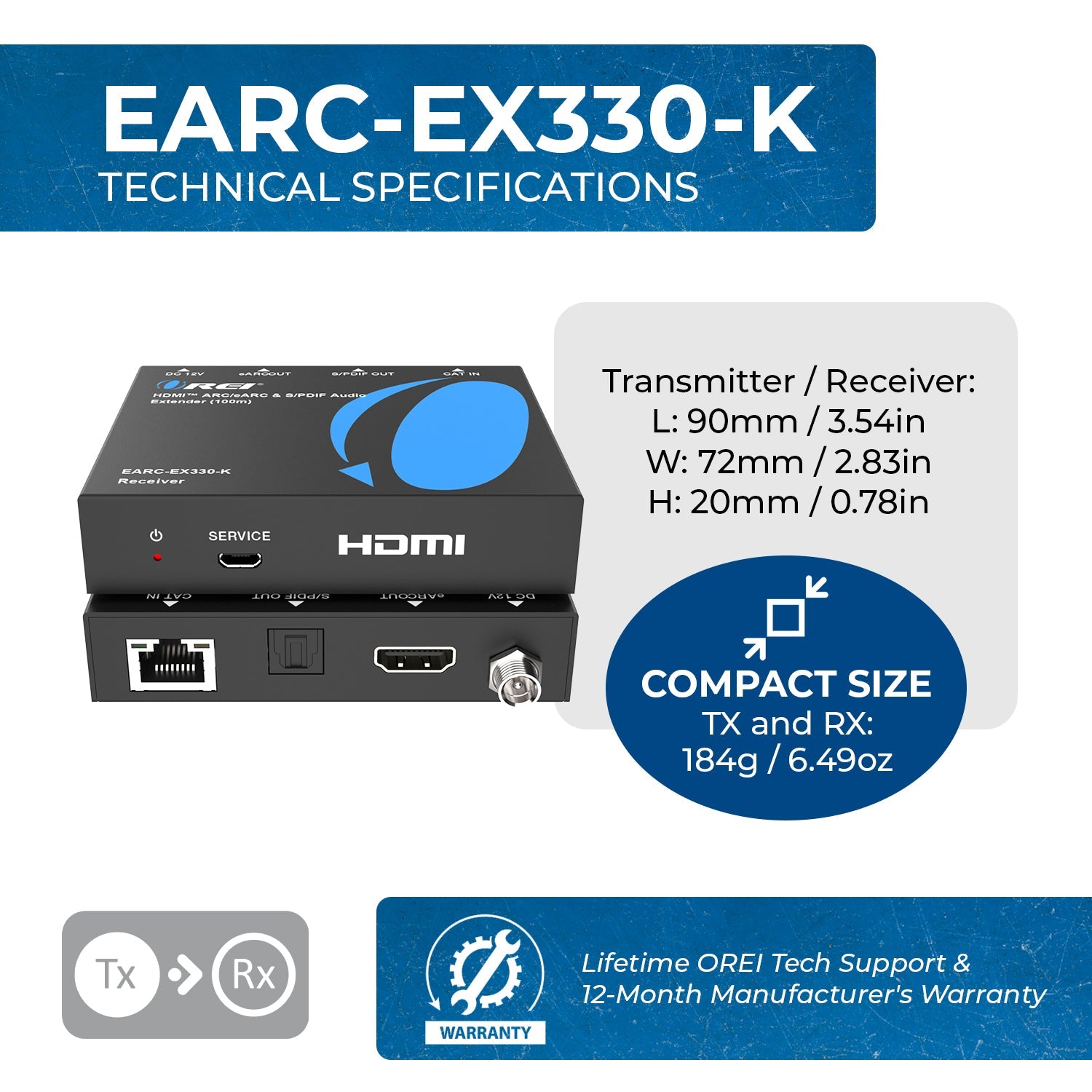 HDMI™ eARC/ARC & S/PDIF Audio Extender - 330ft (cat6)-EARC-EX330-K