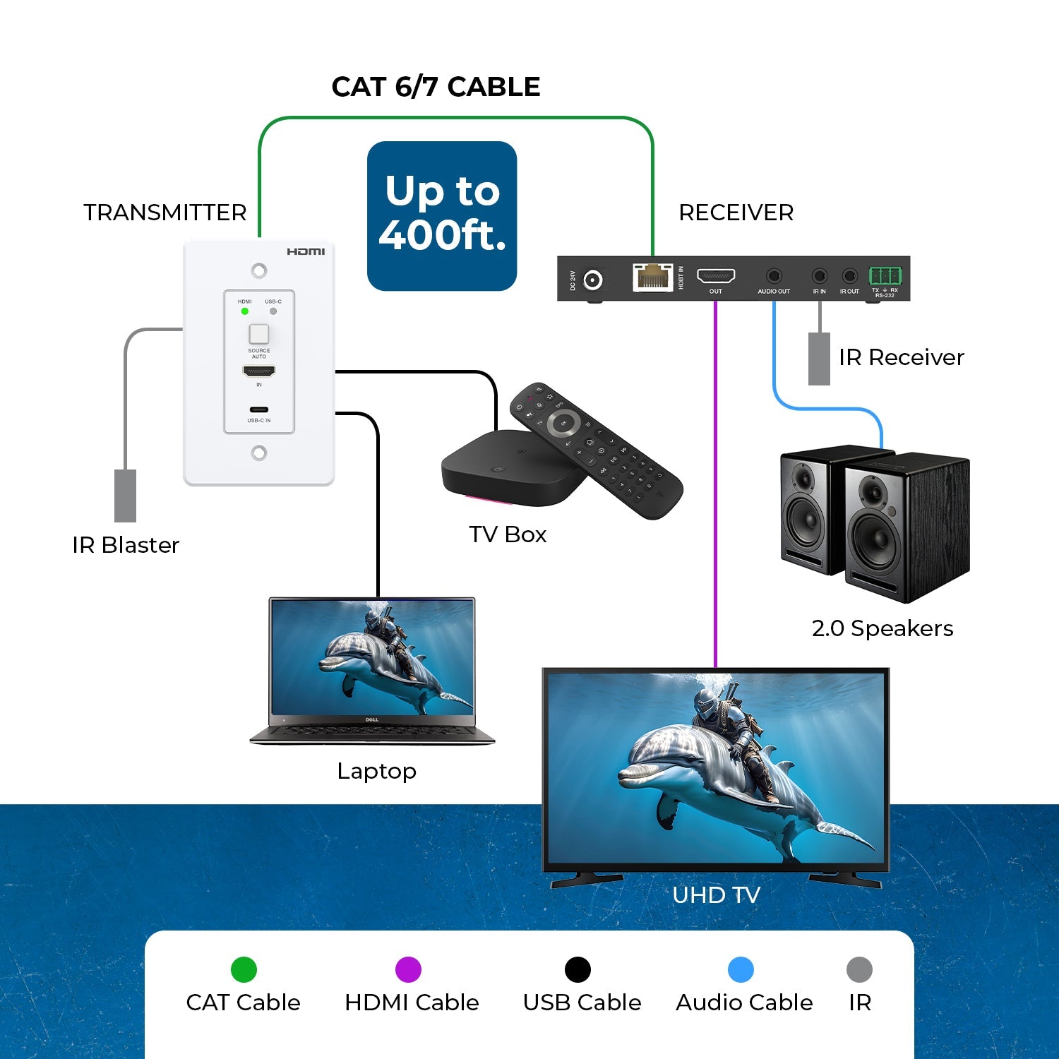 4K HDBaseT HDMI™ & USB-C Extender with Wall Plate (TX) - 400ft (cat6)-UHD-WPE400R-K