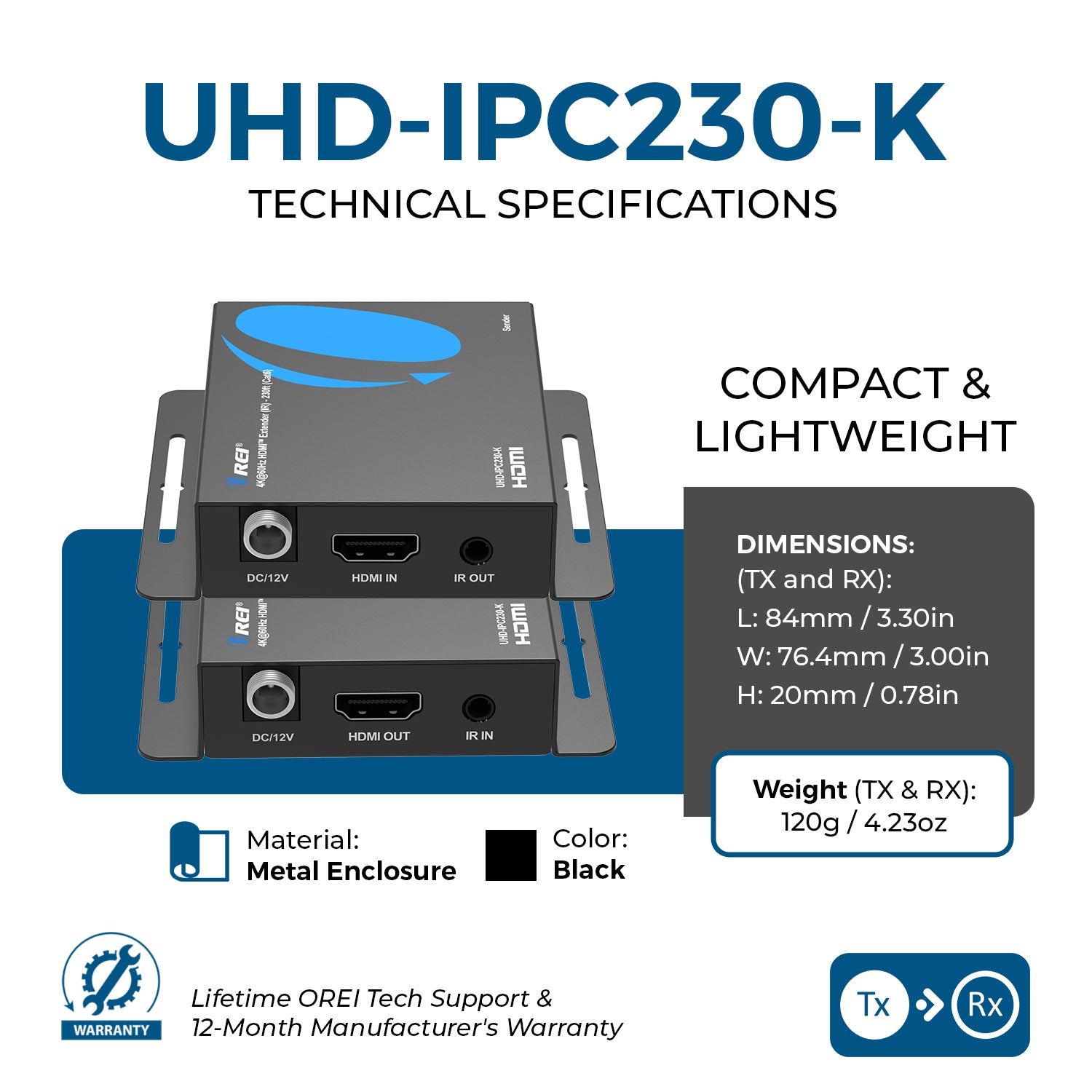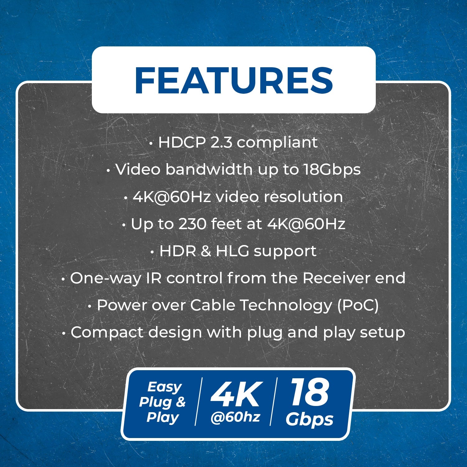 4K@60Hz HDMI™ Extender (IR) - 230ft (Cat6) (UHD-IPC230-K-1)