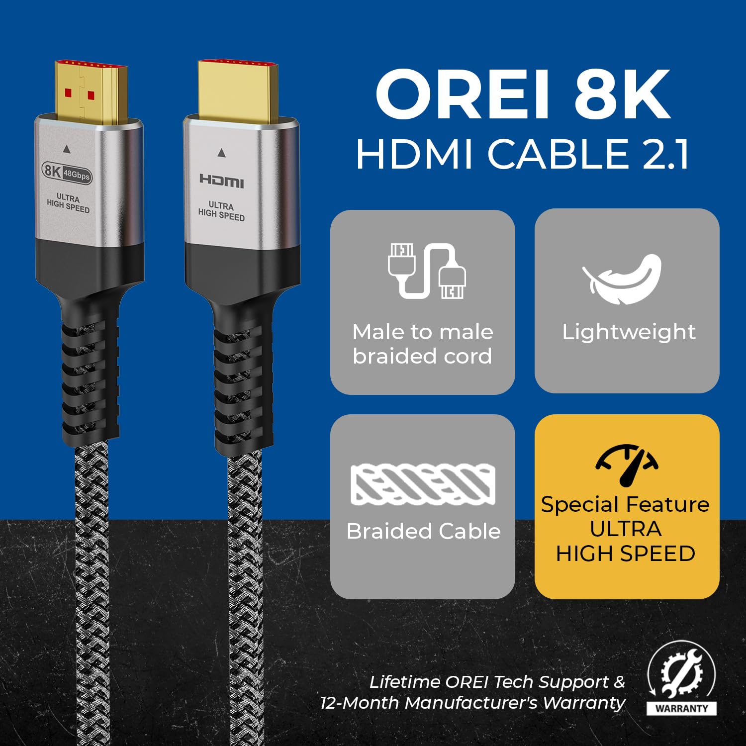 OREI 8K Ultra High-Speed HDMI Cable 5 Meter / 16.4 Feet for TVs & Gaming (H5M-8KB-10PK)