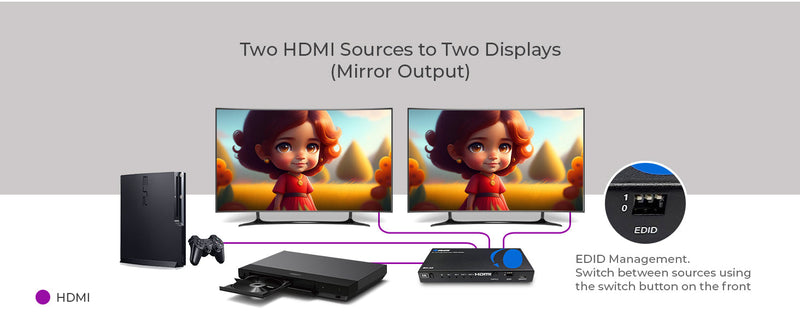Switch Between Two HDMI Sources with Dual Output Display