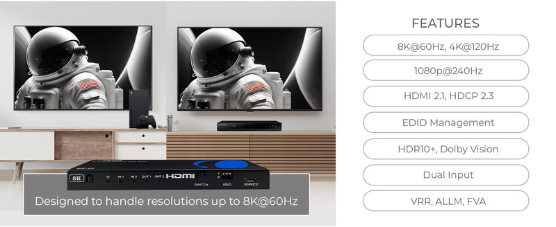8K Dual Input 2-port HDMI™ Splitter-BK-22