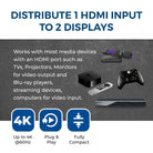 Supporting resolutions up to 4K@60Hz, the UHD-PRO102 delivers stunning, ultra-high-definition video across dual displays. With 18Gbps bandwidth, it ensures smooth, uncompressed transmission of both video and audio. Whether you're using it as a dual HDMI splitter or a 1x2 splitter HDMI for your home theater, this splitter maintains crystal-clear video quality, even when splitting content to multiple screens