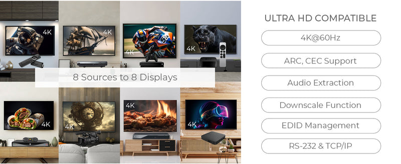 4K@60hz 8x8 HDMI™ Matrix (Audio Extract)-UHD-808
