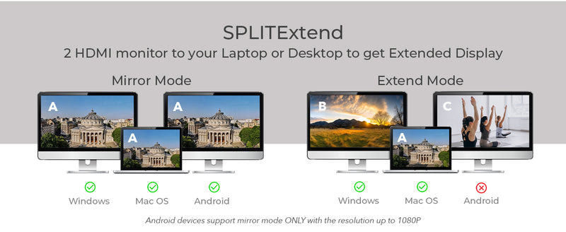 SplitExtend® USB to HDMI Dual Display Adapter