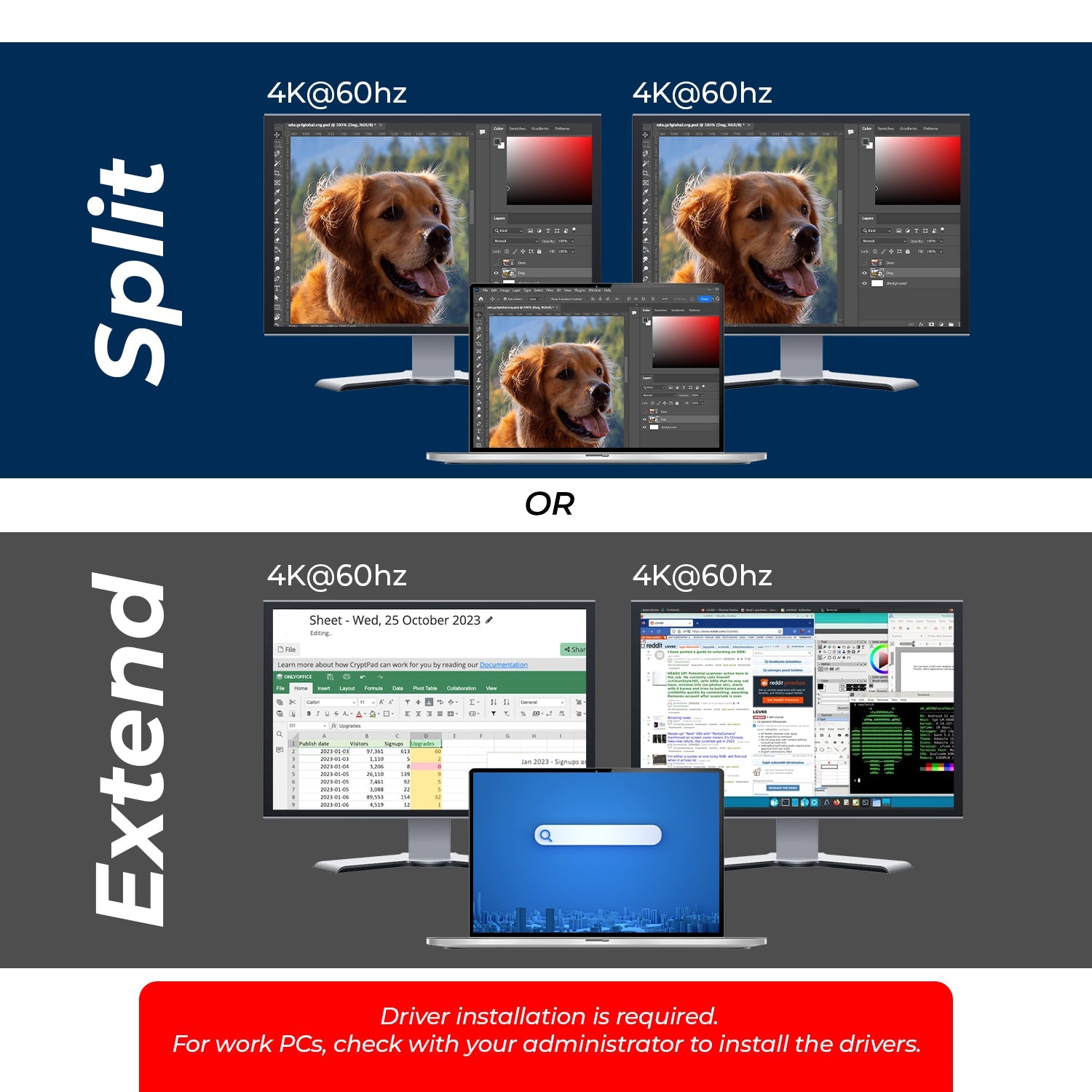 Dual 4K HDMI Outputs for Clear, Extended Display