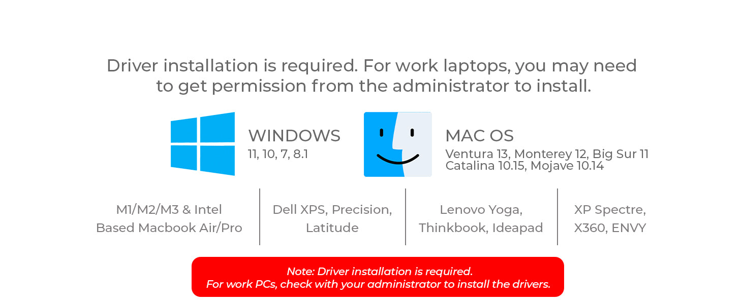 Driver Installation Required – Silicon Motion driver must be installed for proper functionality.