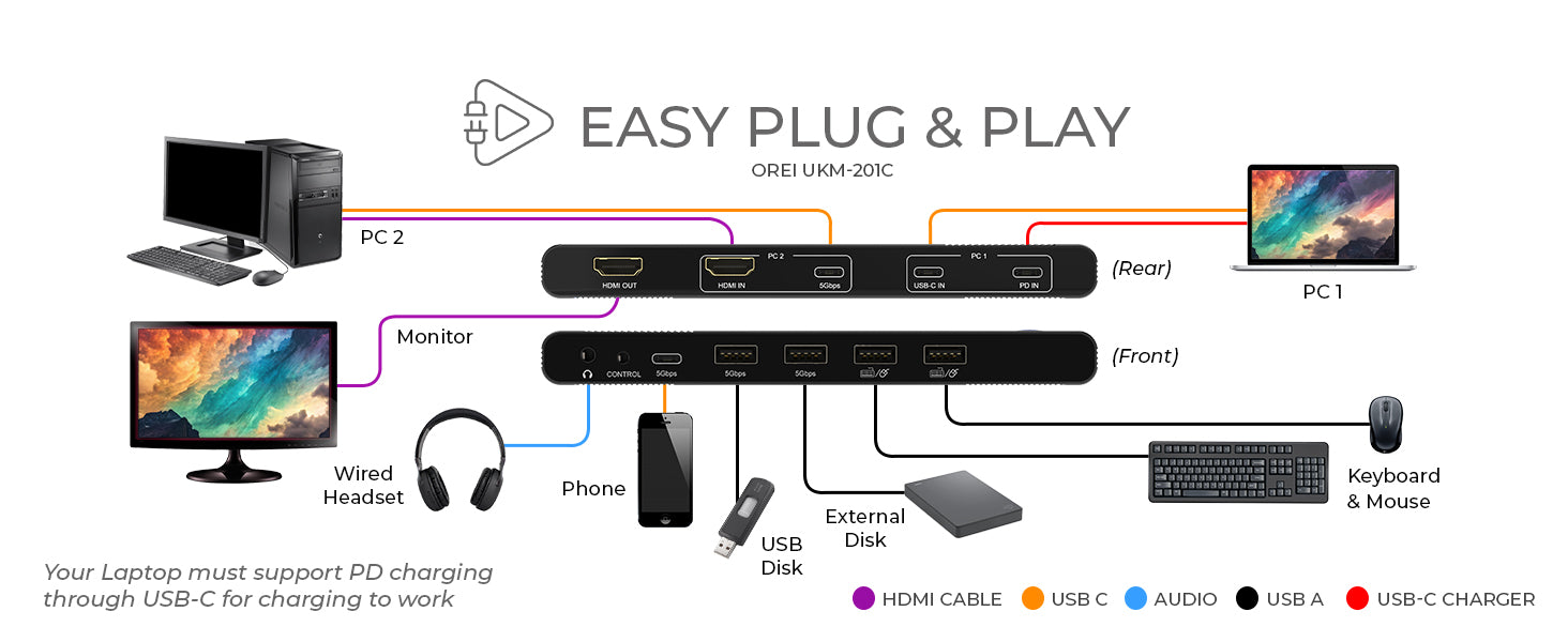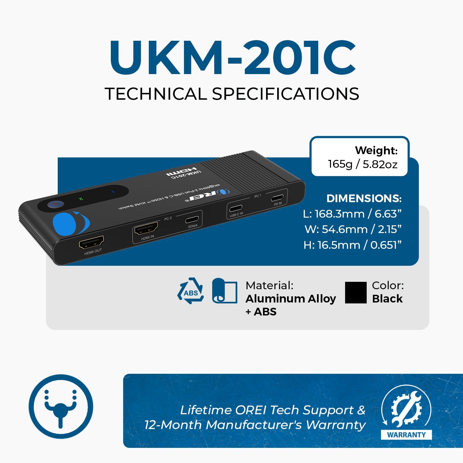 OREI UKM-201C: 4K@60HZ 2-PORT USB-C & HDMI™ KVM SWITCH