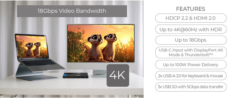 Designed with modern workstations in mind, the device features a USB-C input (with DisplayPort Alt Mode and Thunderbolt™ compatibility) and a standard HDMI port, making it ideal for