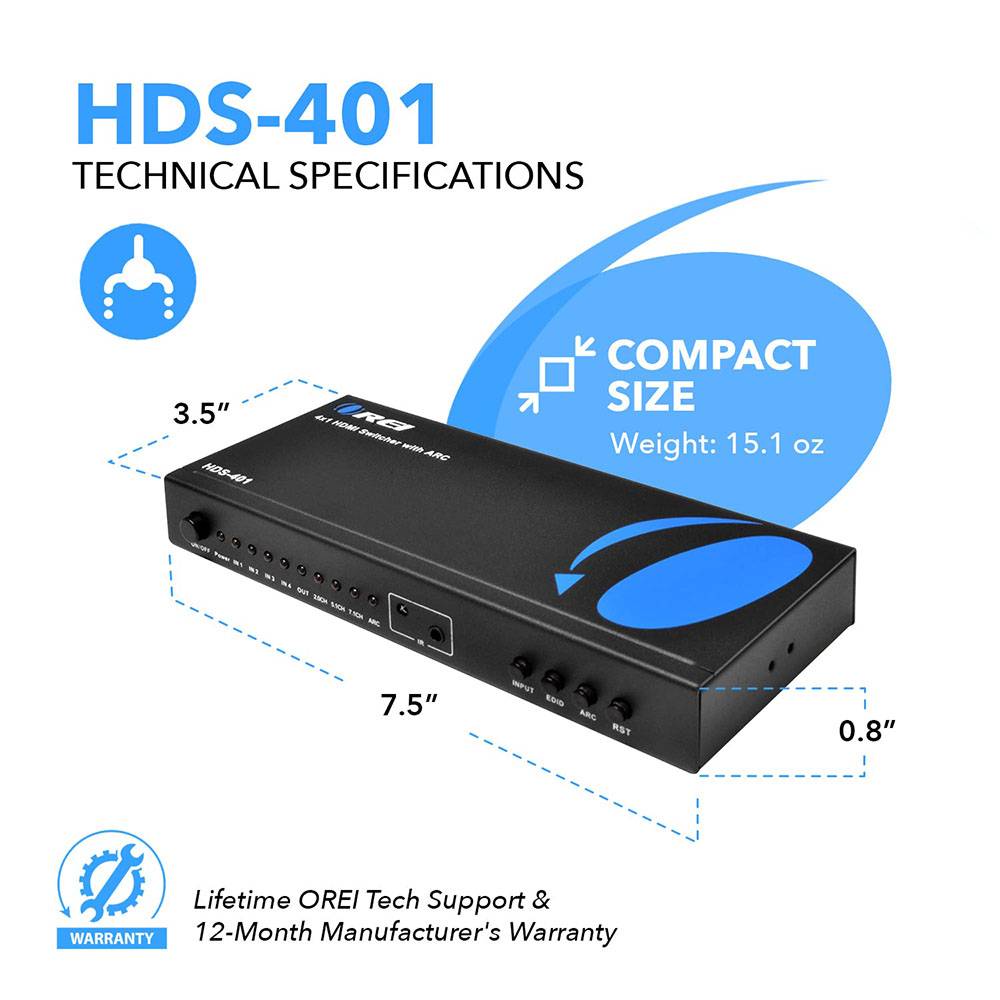 The HDS-401 features ARC support on its HDMI output, allowing audio from an ARC-enabled TV to be routed back to external sound systems via S/PDIF. This HDMI ARC switch eliminates the need for extra audio cables, keeping your setup clean and efficient. It also includes a 3.5mm headphone jack for flexible audio output to suit your environment.