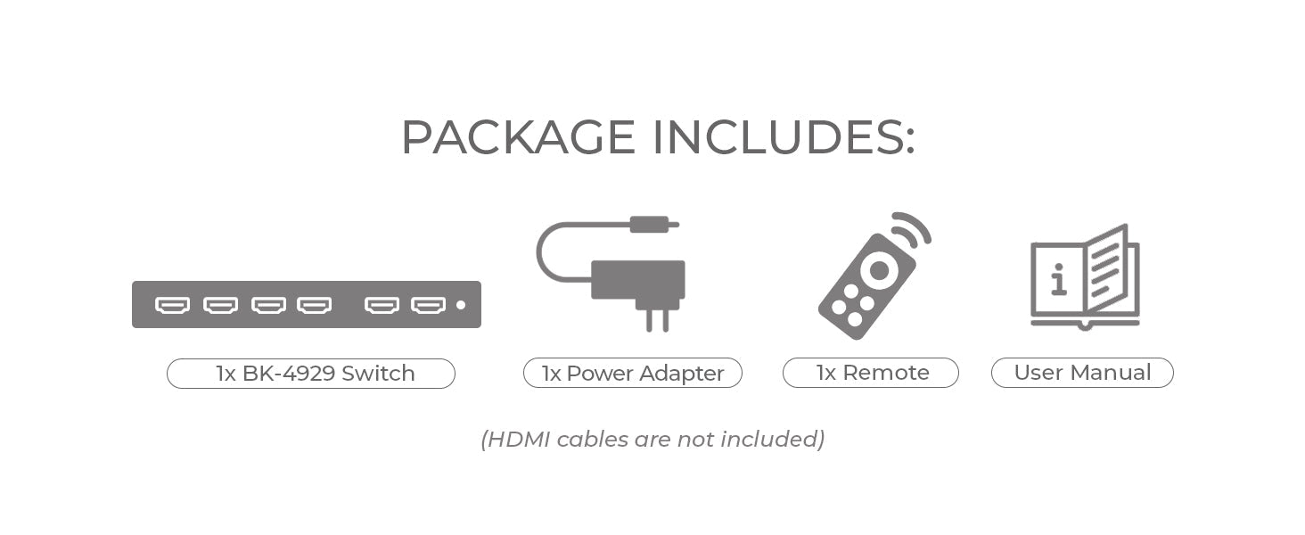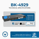 With support for gaming features such as VRR, ALLM, QMS, and QFT, along with CEC functionality, the BK-4929 offers both flexibility and convenience. Its compact, plug-and-play design makes it a reliable addition to any modern AV setup—whether at home or in commercial