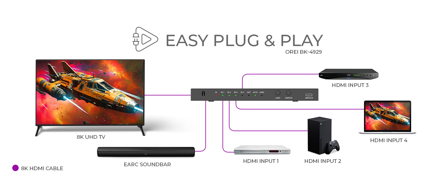 OREI BK-4929: 8K@60HZ 4-PORT HDMI™ SWITCH (EARC)