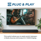 It supports advanced video formats like HDR10+, Dolby Vision, and HLG, as well as passthrough for high-definition audio formats such as Dolby Atmos, DTS:X, and more. A dedicated eARC output allows you to send audio from either your eARC TV or the connected media sources to an eARC-enabled soundbar like the Sonos ARC or Beam, creating an immersive audio experience.