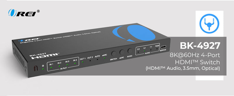 OREI BK-4927: 8K@60HZ 4-PORT HDMI™ SWITCH (HDMI AUDIO, 3.5MM, OPTICAL)