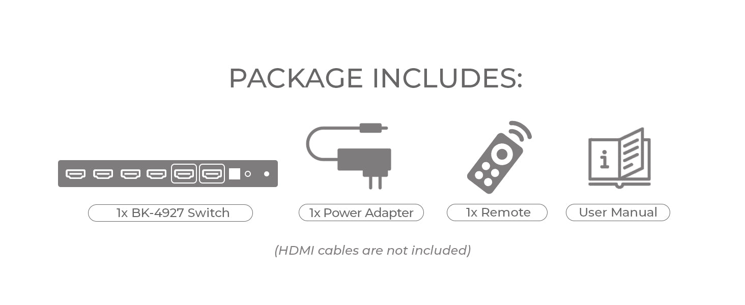 The BK-4927 is a powerful 4x1 HDMI™ switcher designed to easily connect and control multiple media sources while delivering exceptional video and audio quality. It connects up to four HDMI™ sources to a single 8K or 4K display, making it ideal for home theaters, gaming setups, and professional AV systems.