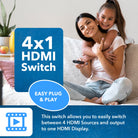 The OREI BK-401A is a premium 4x1 HDMI switch designed to connect up to four HDMI sources—such as gaming consoles, media players, or streaming boxes—to a single 8K or 4K display. Whether you're switching between a PS5, Apple TV, or high-end Blu-ray player, this switch HDMI 4 port offers seamless transitions with full support for HDMI 2.1 and HDCP 2.3 standards.