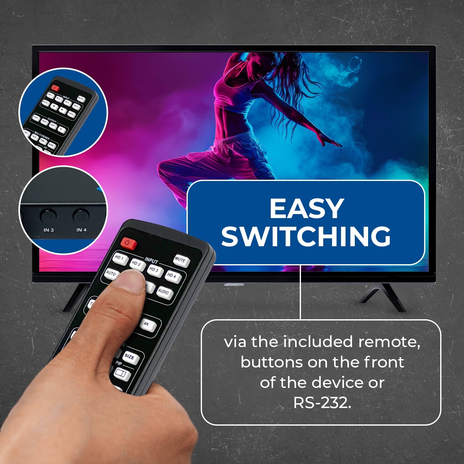 - Remote-Controlled Audio Selection – Choose the active audio source in Multiview mode using the included remote.