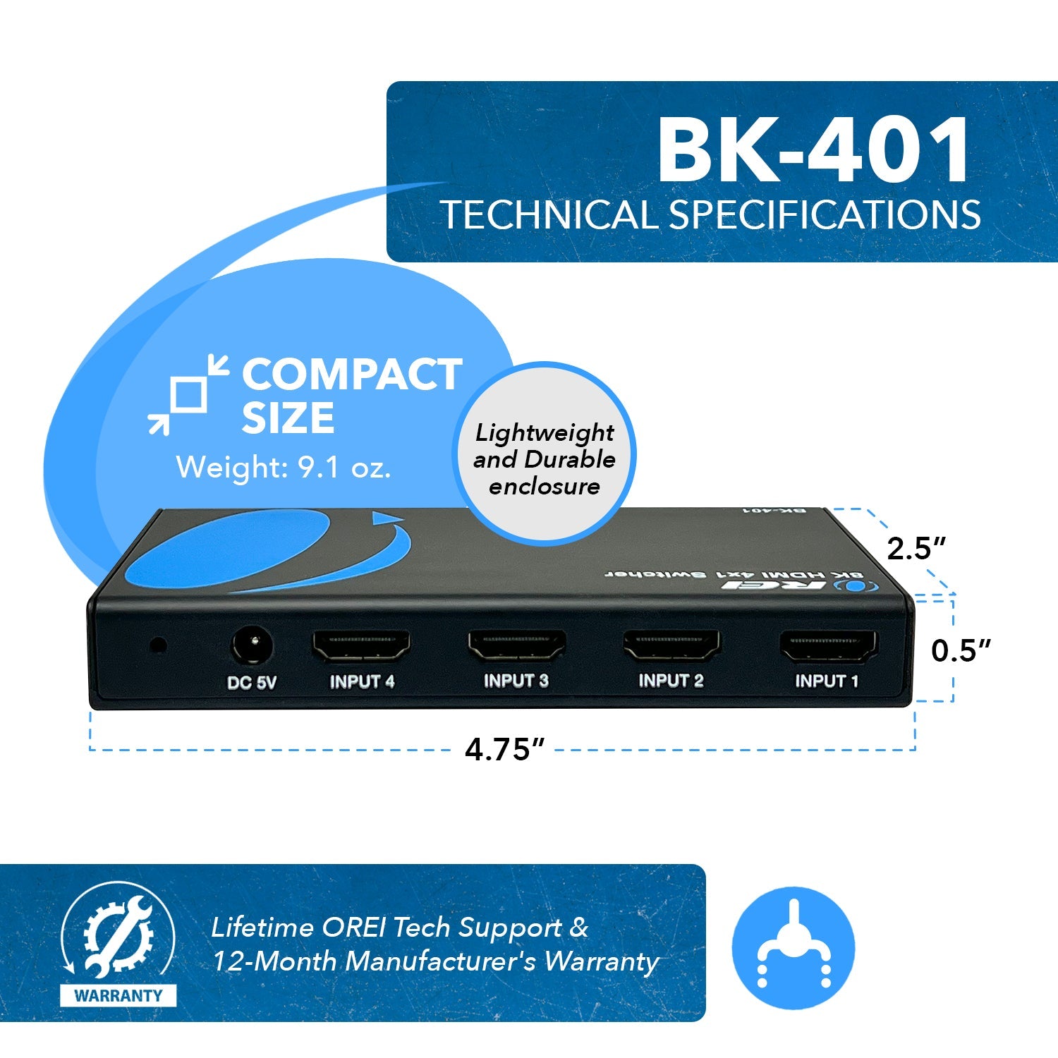 BK-401: 8K 4 Input 1 Output HDMI Switch
