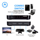 - 3-In-1-Out Switch (2 HDMI + 1 USB-C Inputs) – Easily toggle between three different video sources on a single HDMI output.