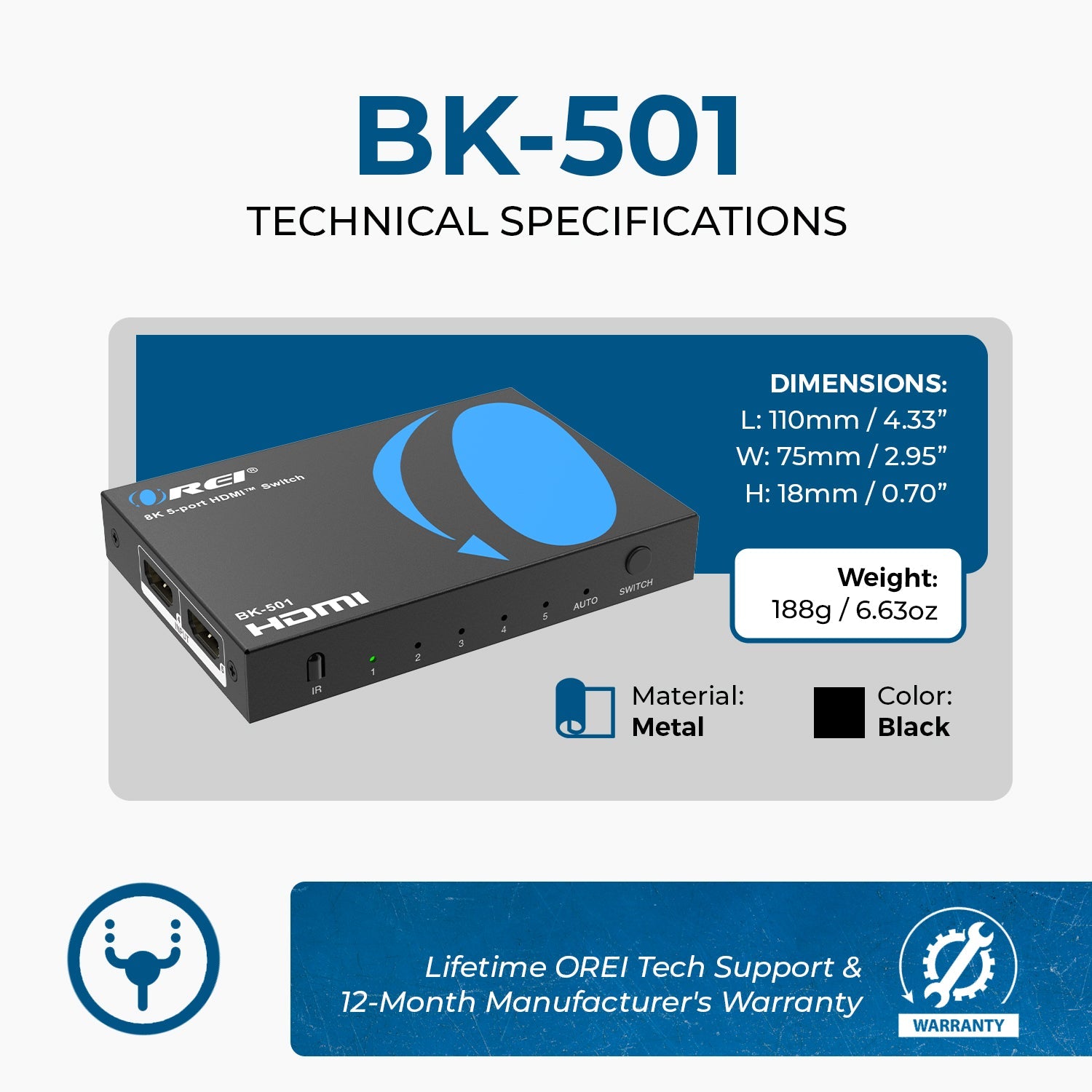 4K@60Hz 5-port HDMI™ Switch (BK-501)