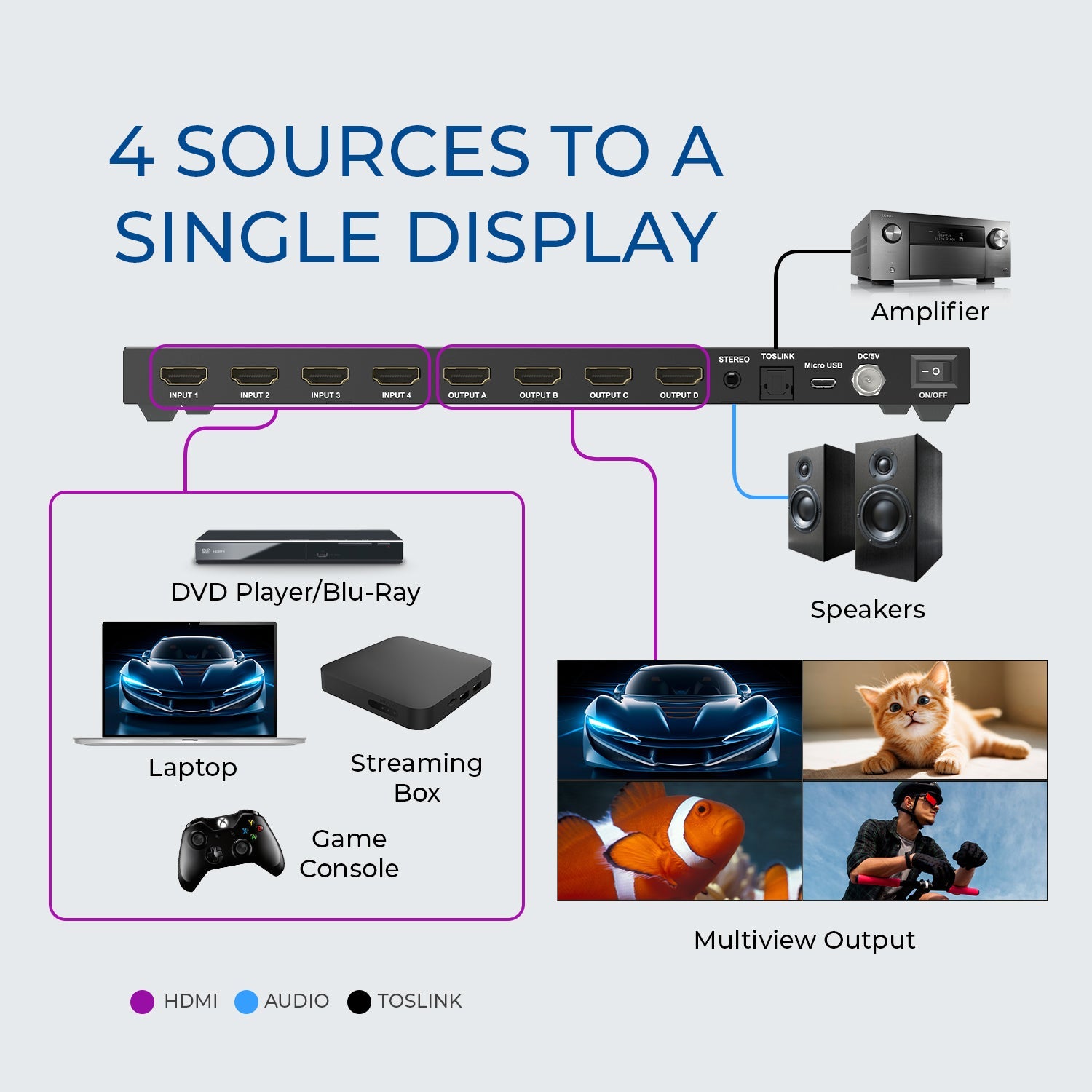 8K 4-port HDMI™ Switch (Audio Extract) (BK-41A)
