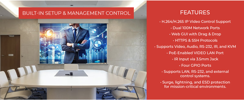 - Full Signal Control – Supports video, audio, RS-232, IR, and KVM across distributed IP systems.