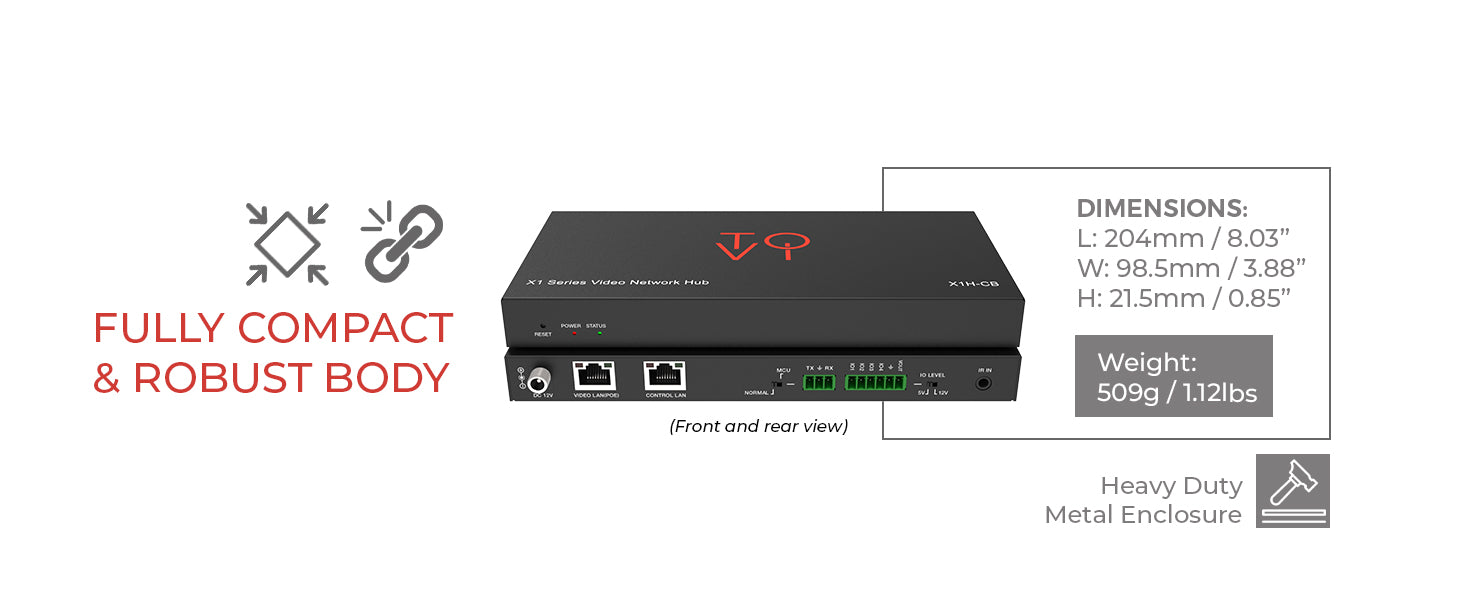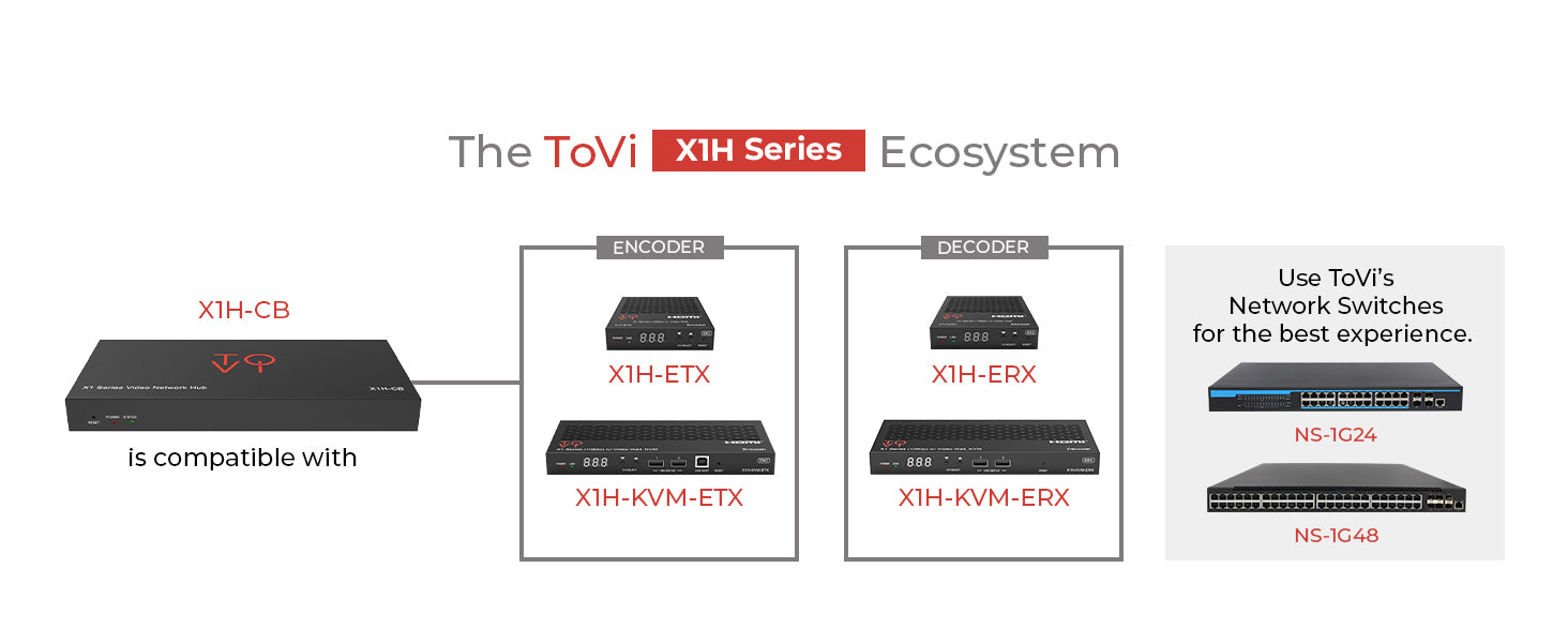 - H.264/H.265 IP Video Control Support – Optimized for use with ToVi’s X1H series for efficient AV signal management.