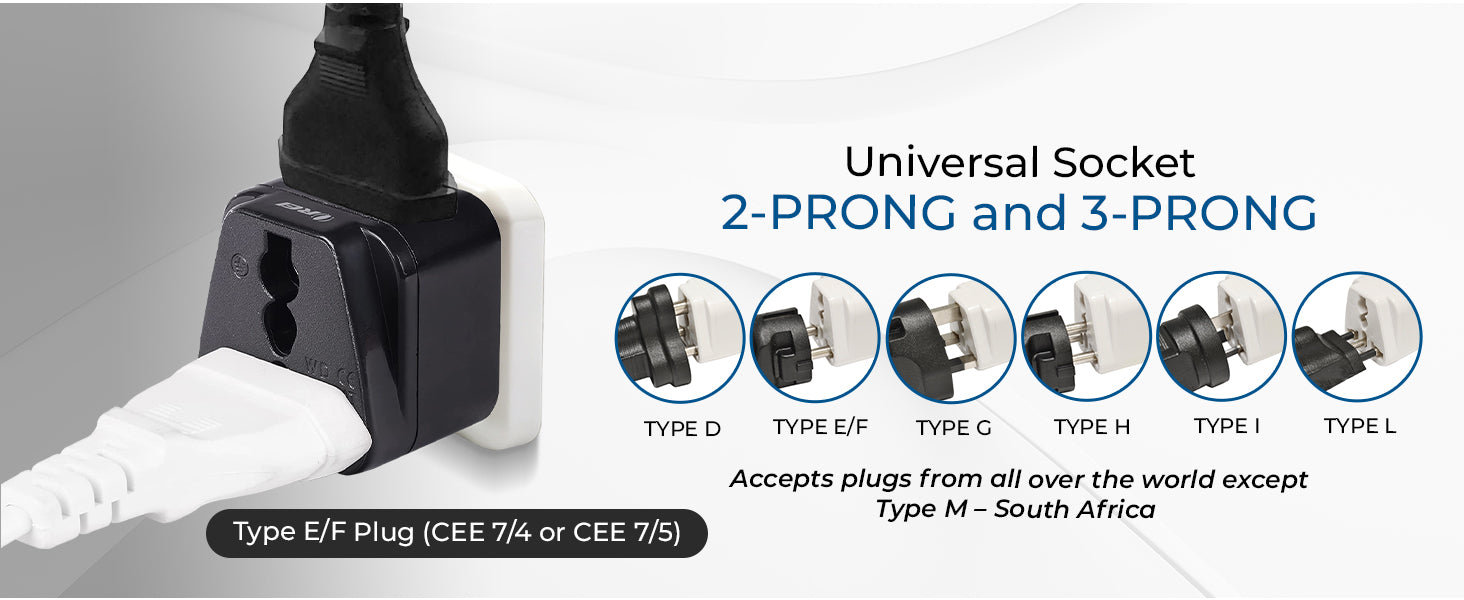 The P21-9-4PK is designed in the US and it’s our top choice for travel adapter to use in Type E/F outlets. It's compatible for use with dual voltage or worldwide voltage devices .It features one socket to connect a N. American 2-prong or a 3-prong power cord to charge your devices.